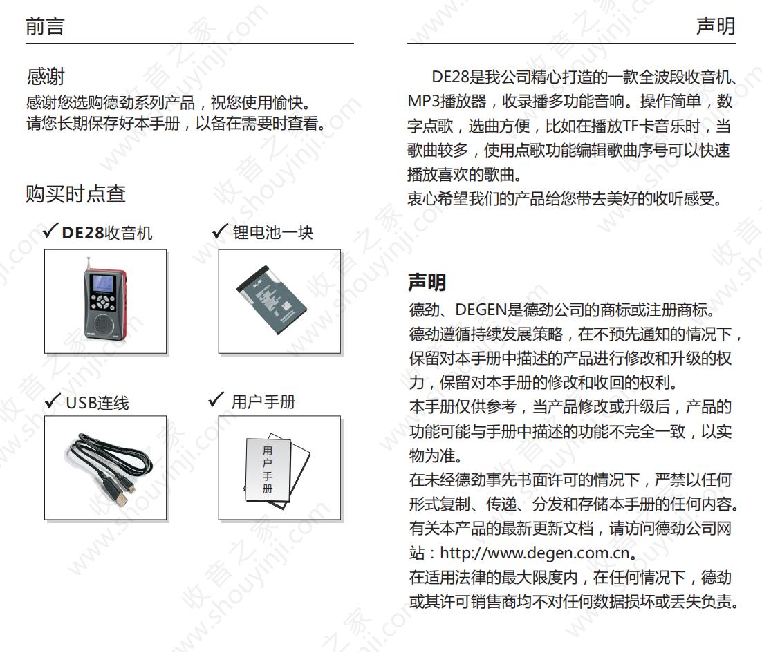 德劲DE28收音机说明书