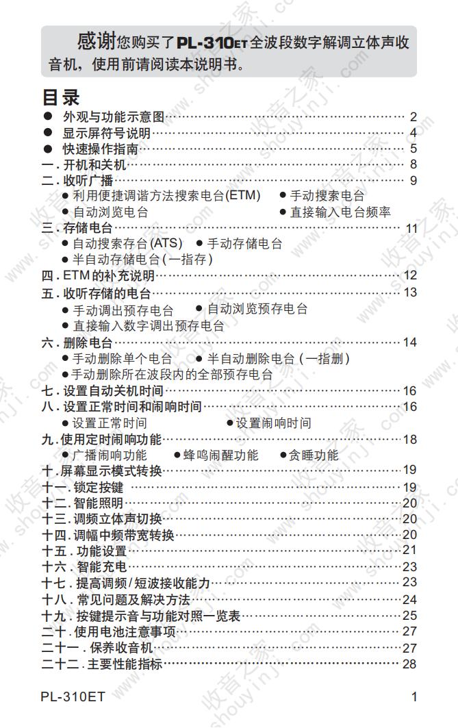 德生PL-310ET收音机说明书