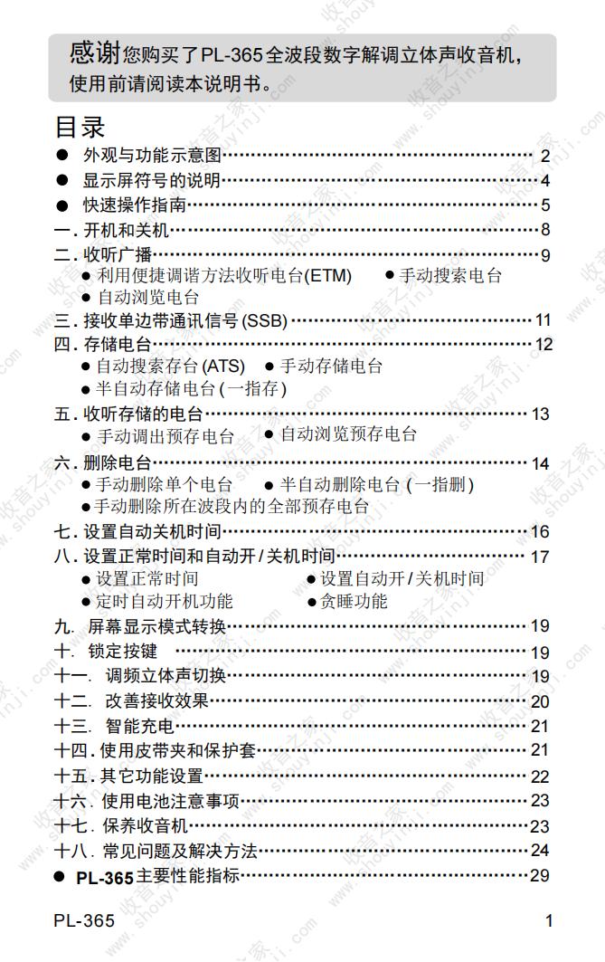 德生PL-365收音机说明书