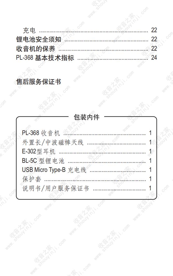 ●随机附送锂电池、USB充电线、中波外置天线、立体声耳机和精美保护套
