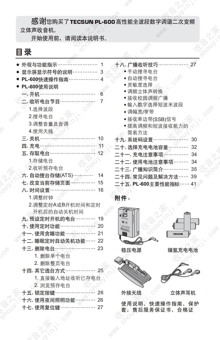 德生PL-600收音机说明书
