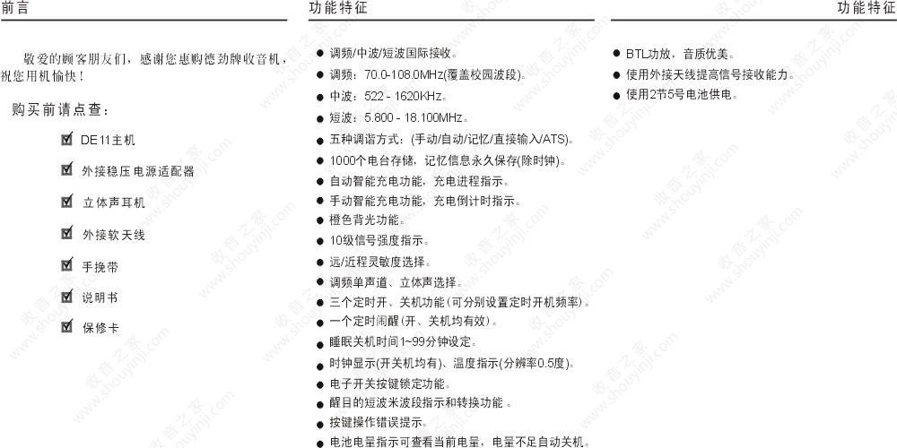德劲DE11收音机说明书