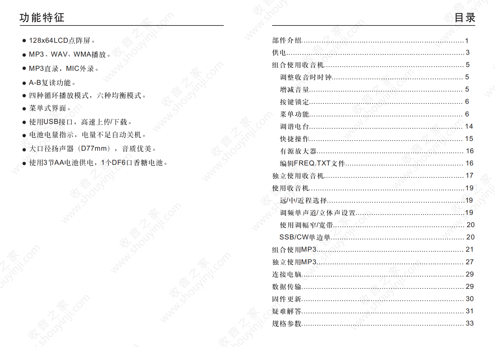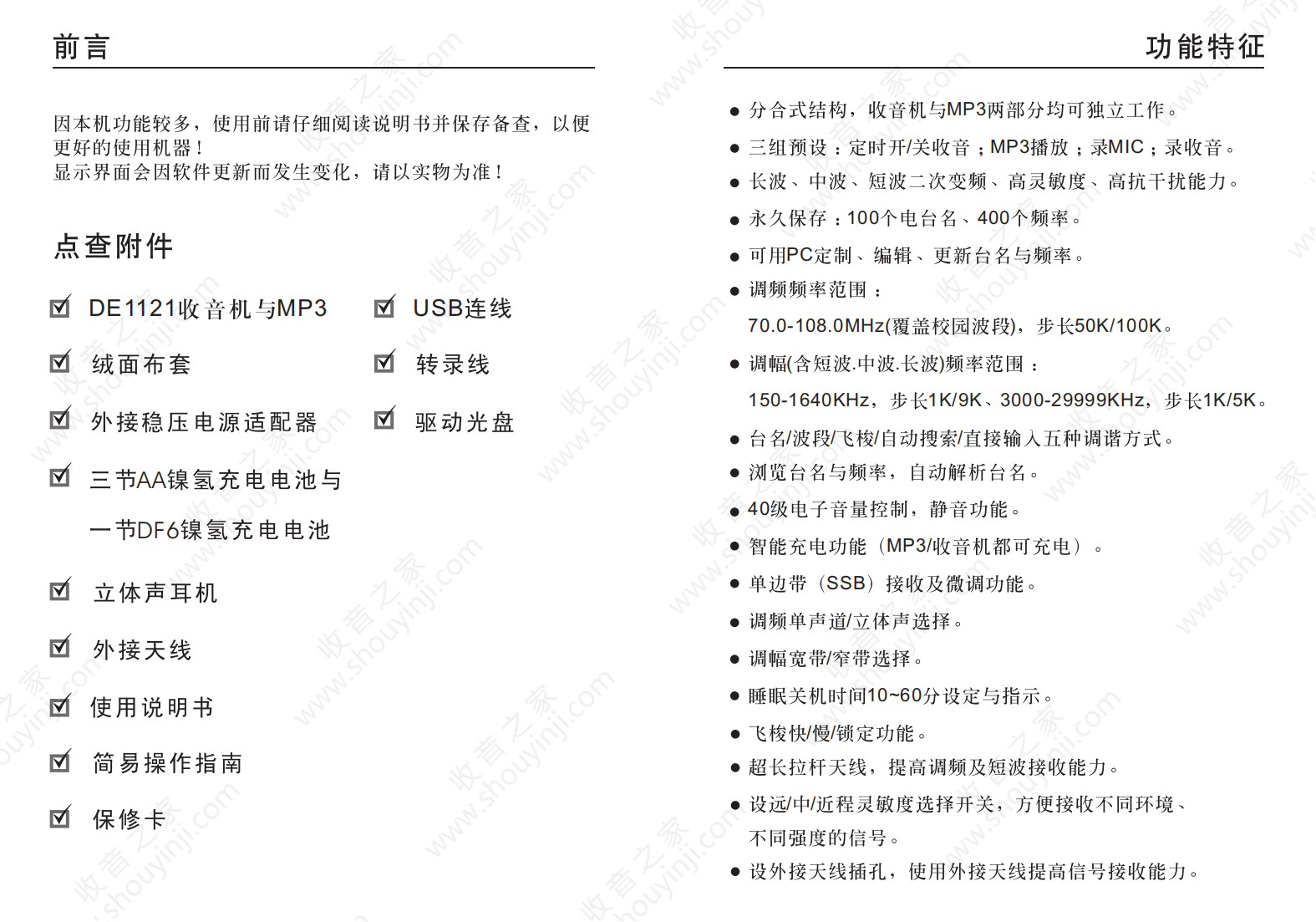 德劲DE1121收音机说明书(版本:06-11-1.0)