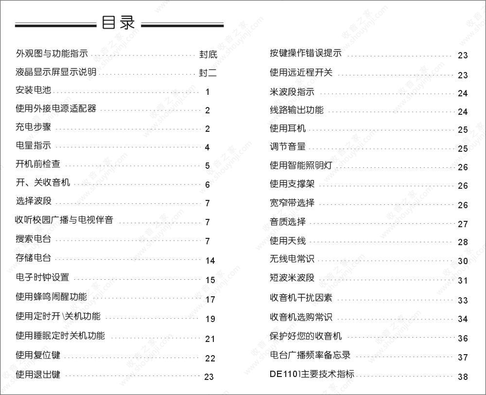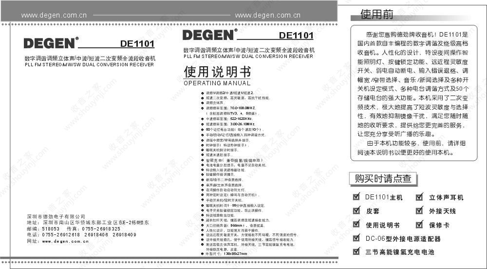 德劲DE1101收音机说明书