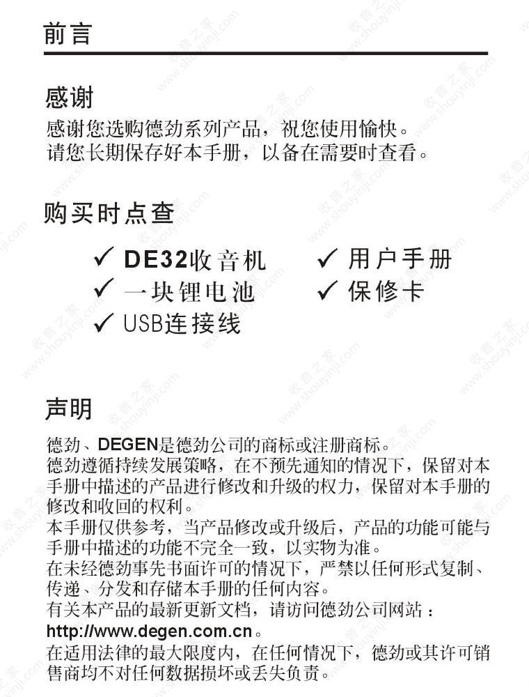 德劲DE32收音机说明书