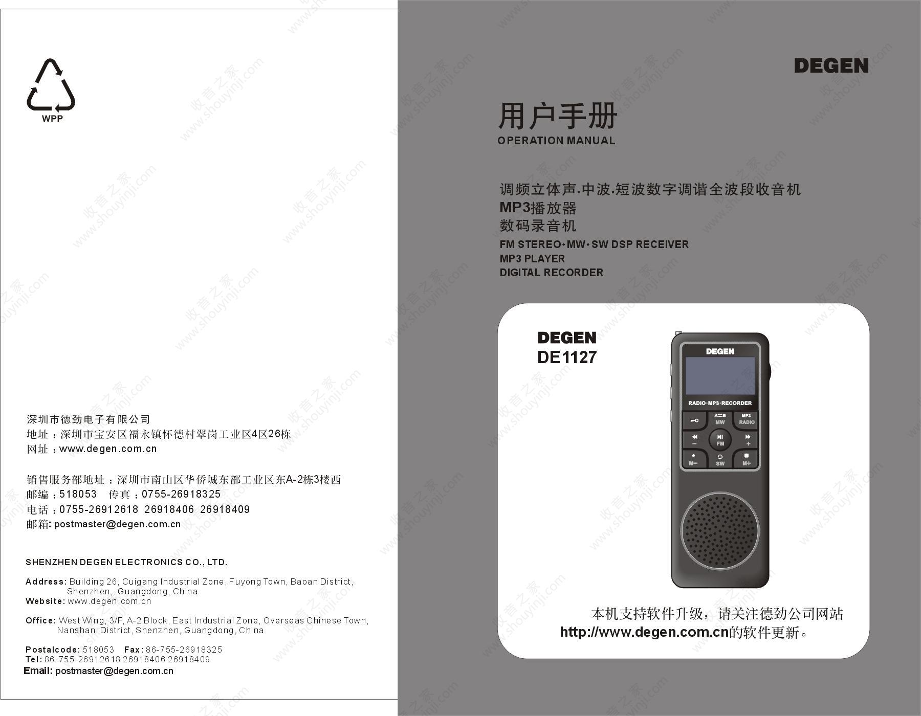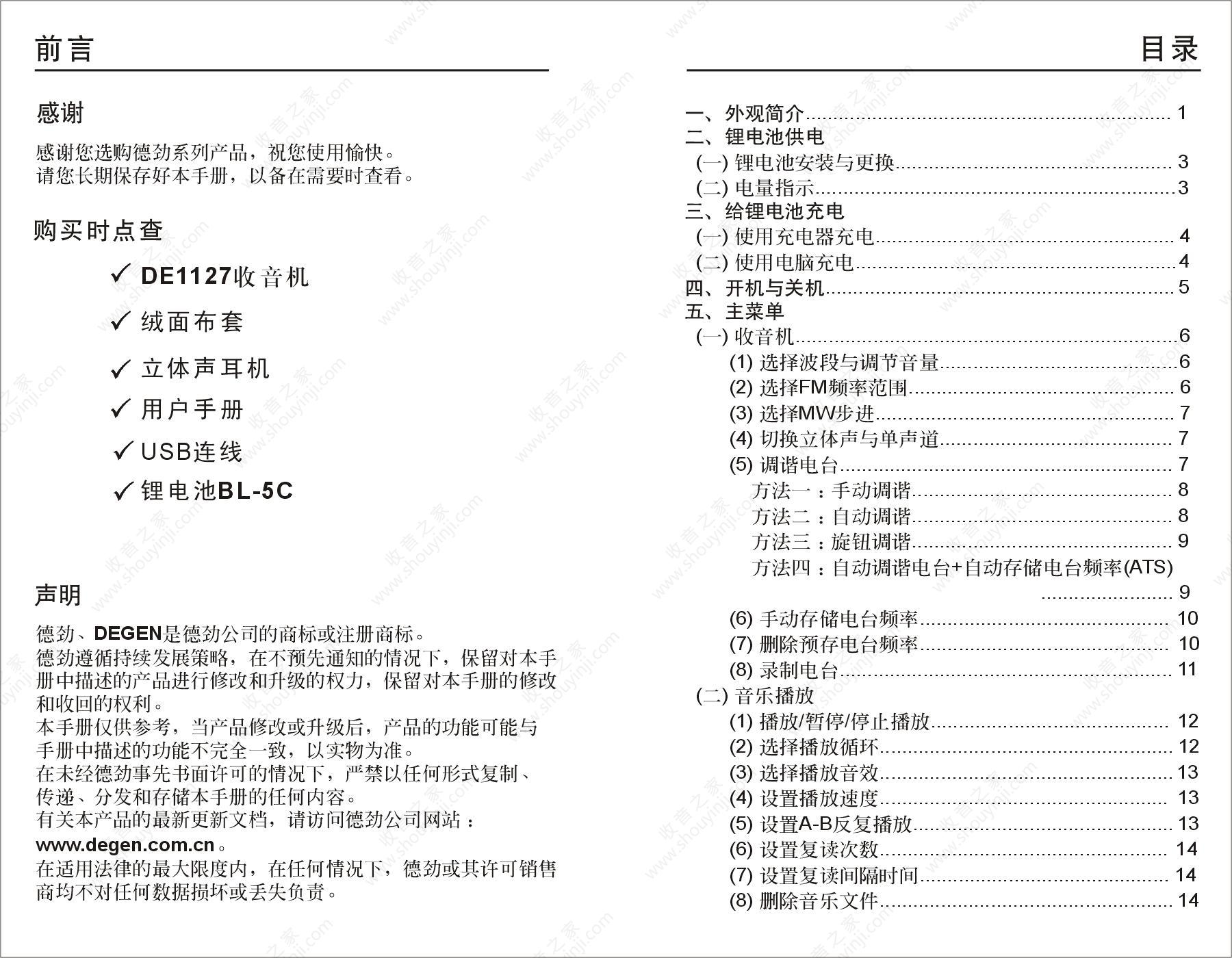 德劲DE1127收音机说明书