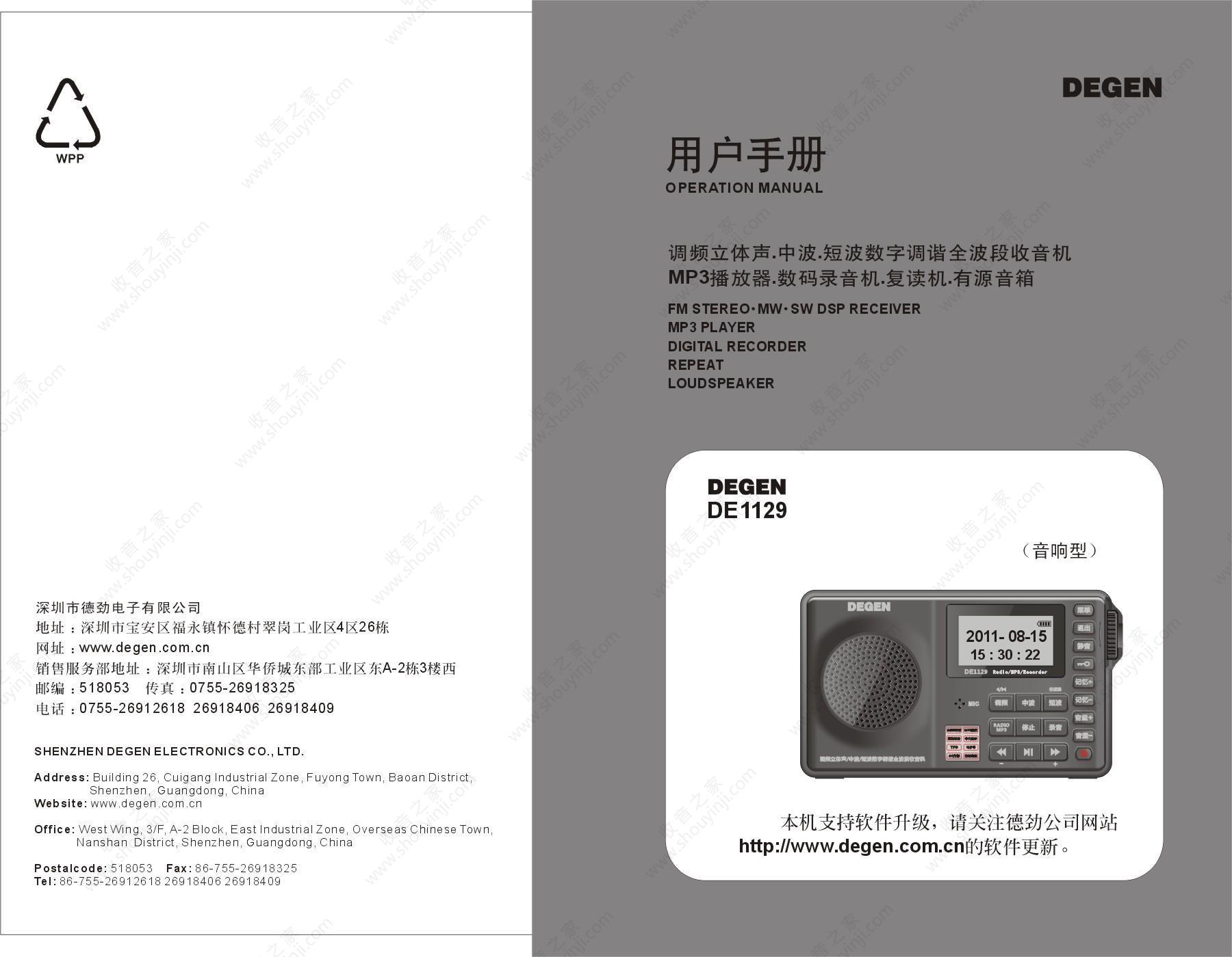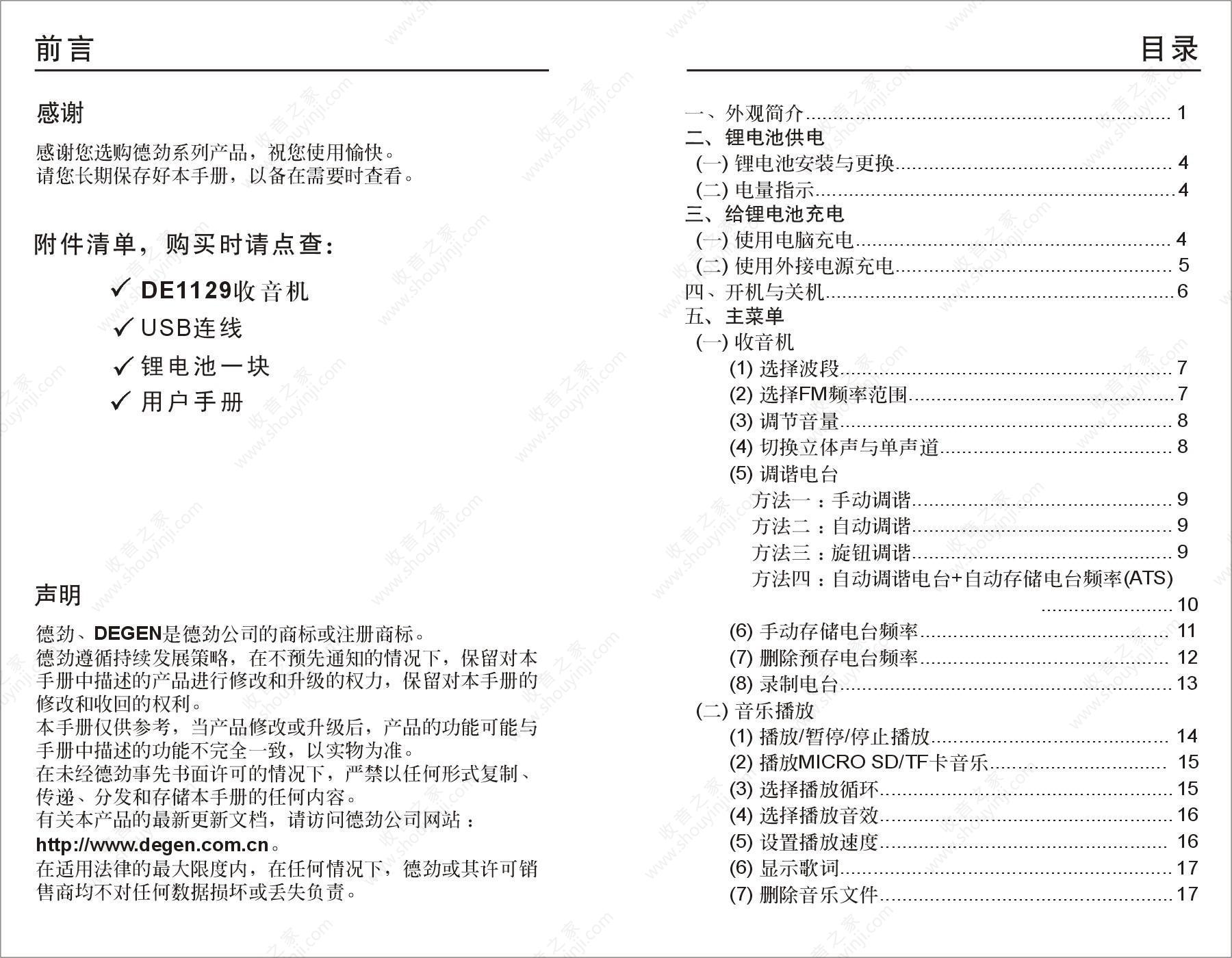 德劲DE1129收音机说明书