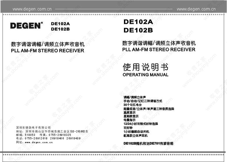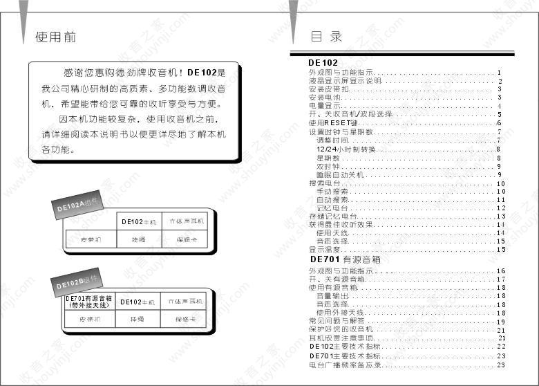 德劲DE102收音机说明书