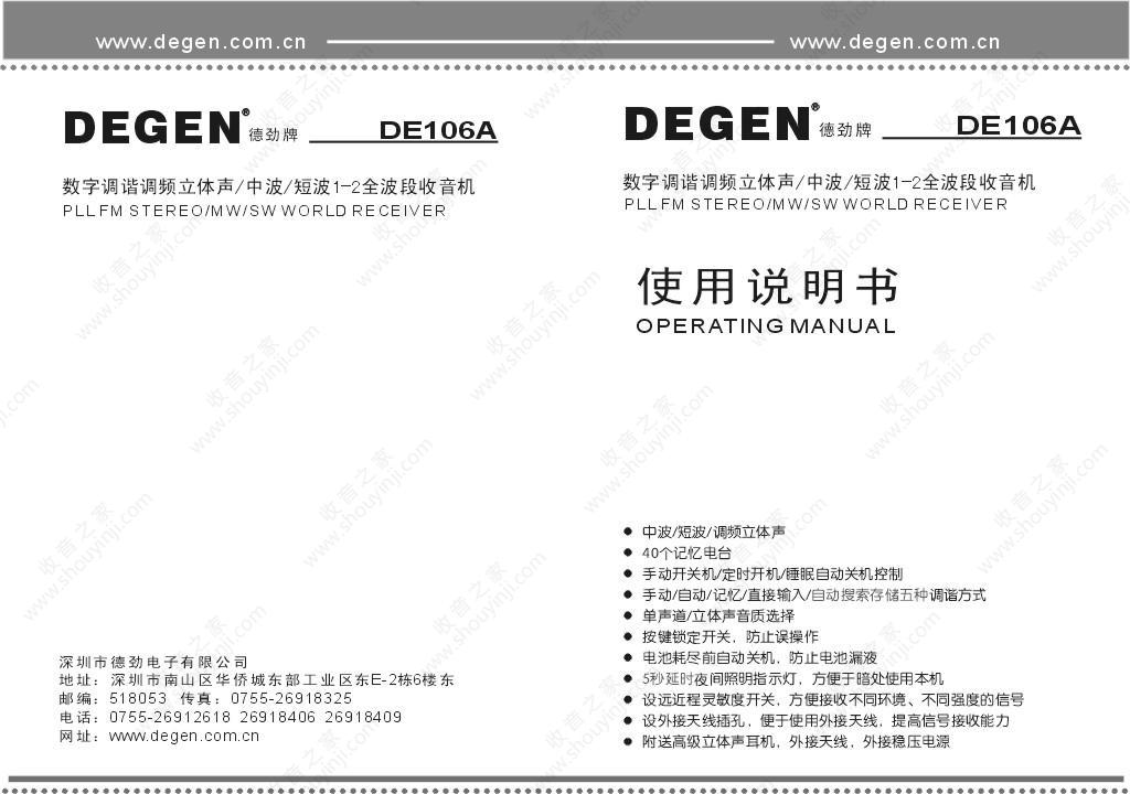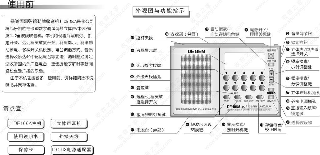 德劲DE106A收音机说明书