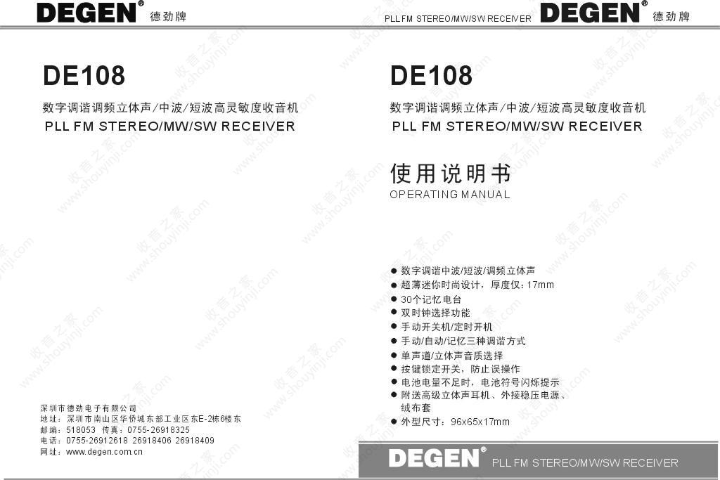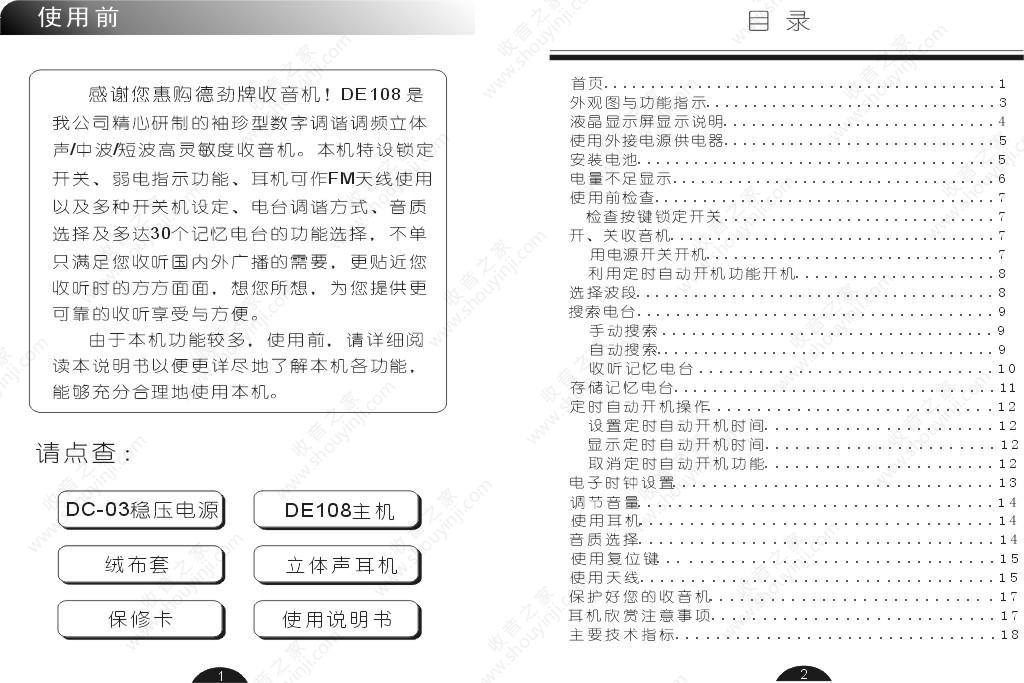 德劲DE108收音机说明书
