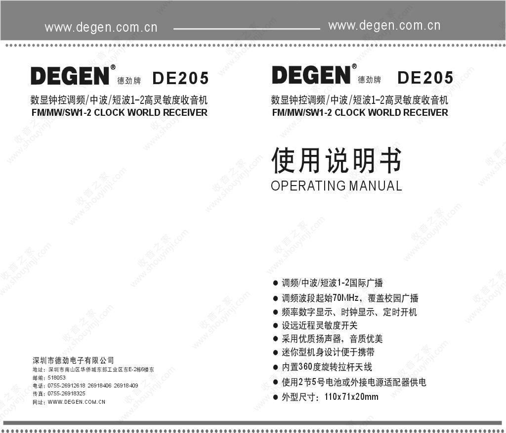 德劲DE205收音机说明书