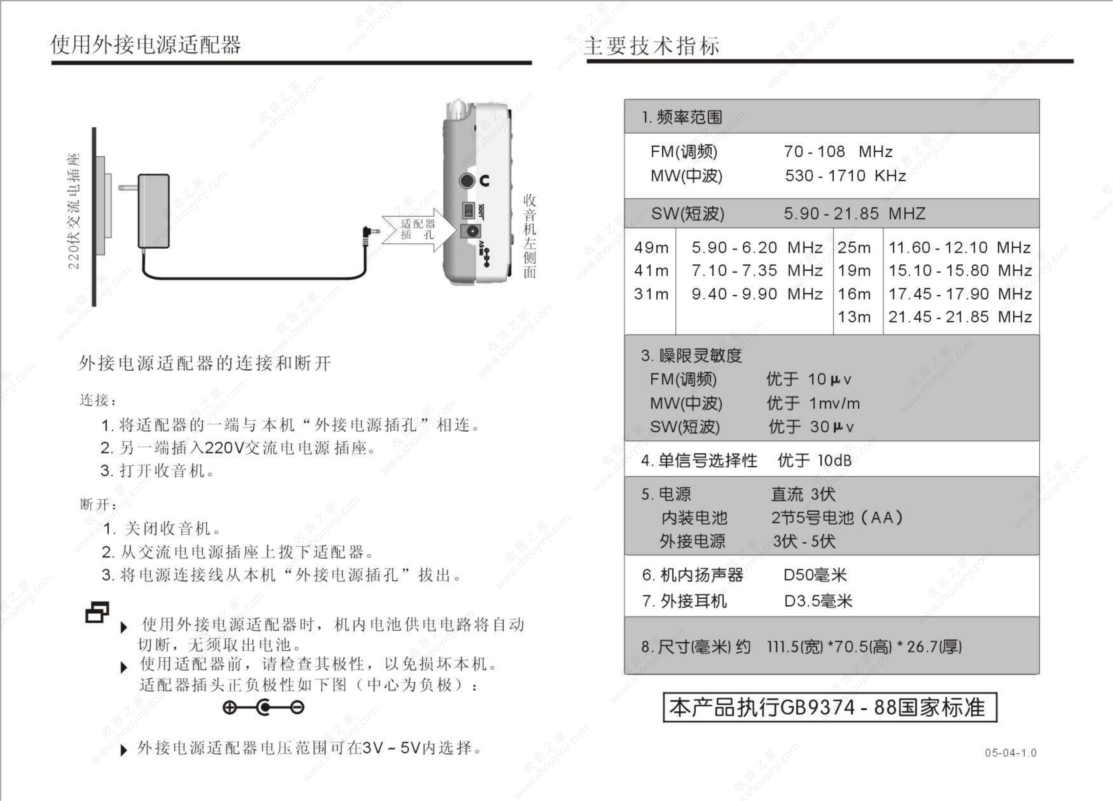 德生PL-600收音机说明书