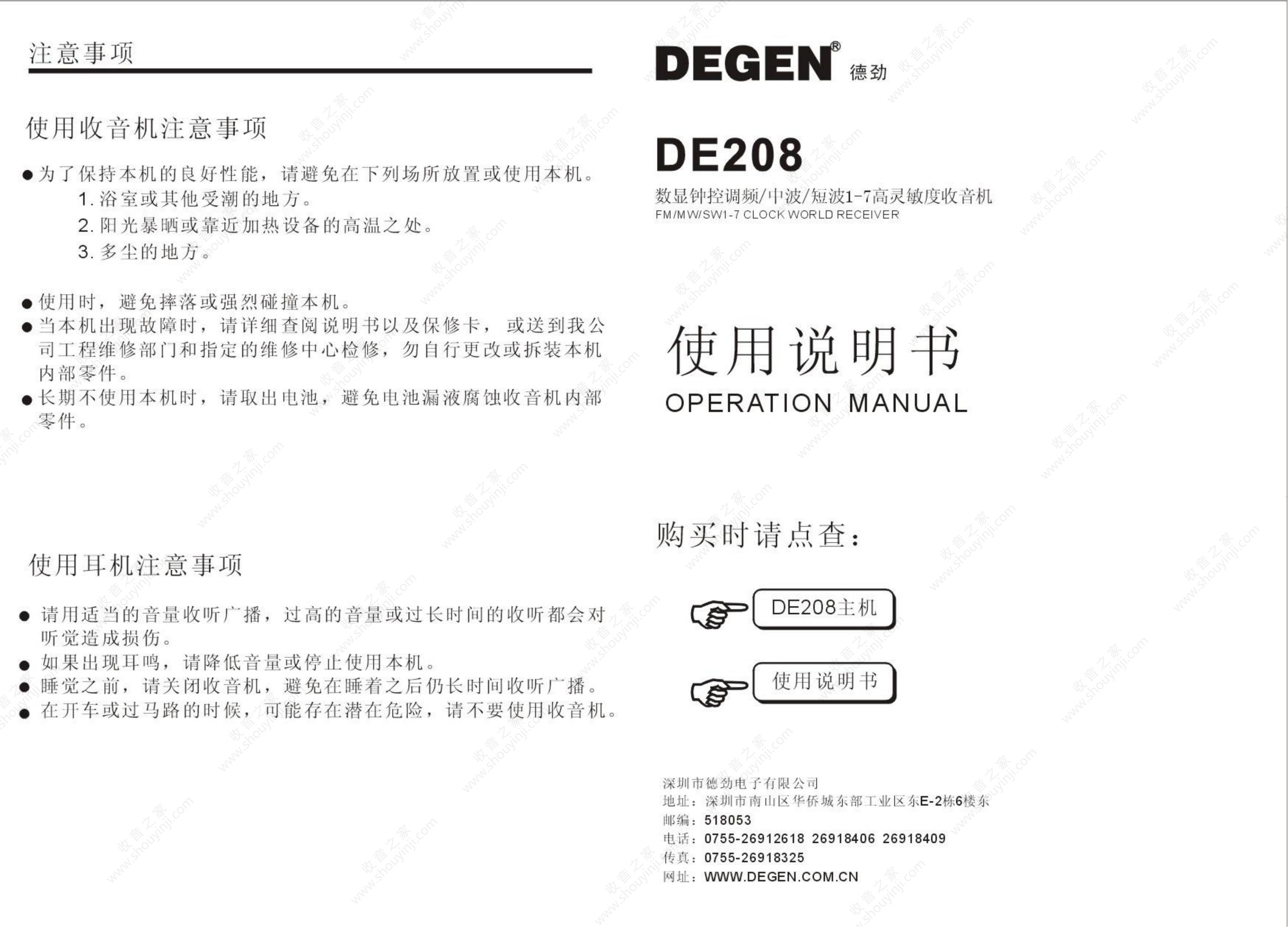 德劲DE208收音机说明书