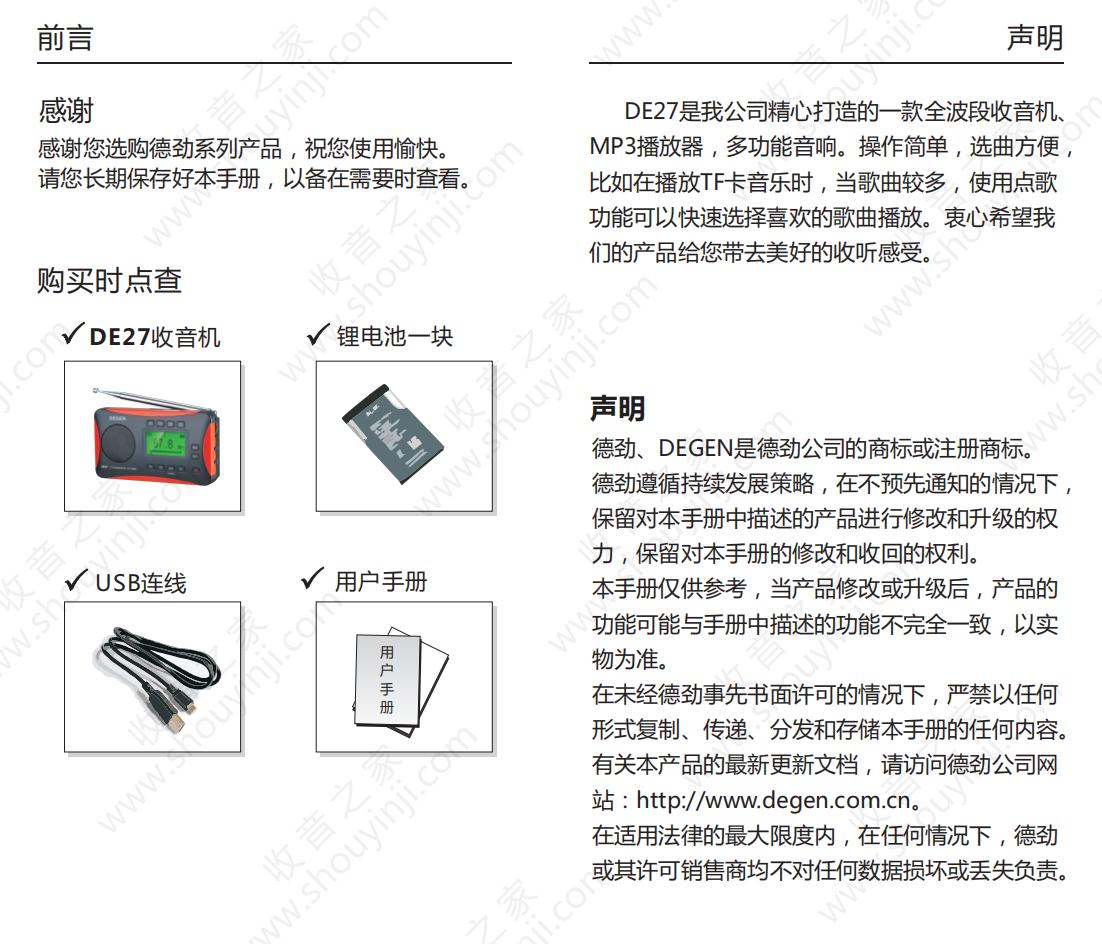 德劲DE27收音机说明书